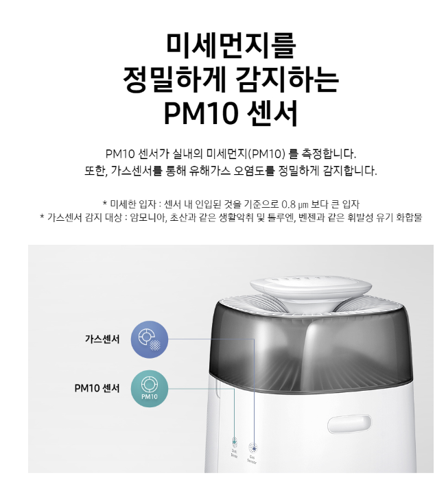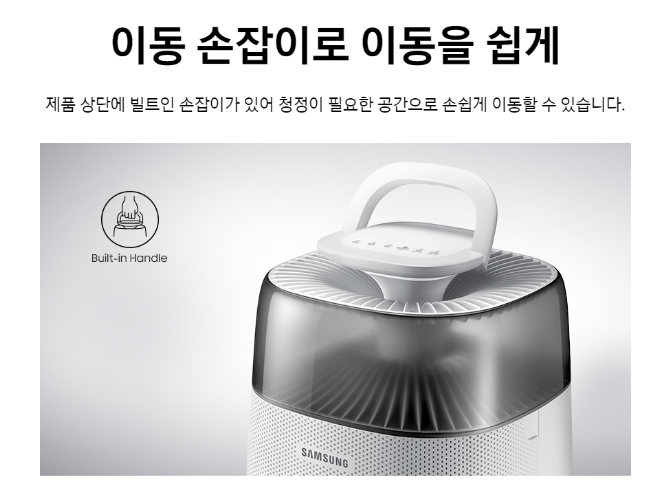 - 스마트 기능: 삼성 SmartThings와 연동되어 스마트폰을 통해 원격으로 공기청정기를 제어하고 실시간 공기 질을 모니터링할 수 있습니다.