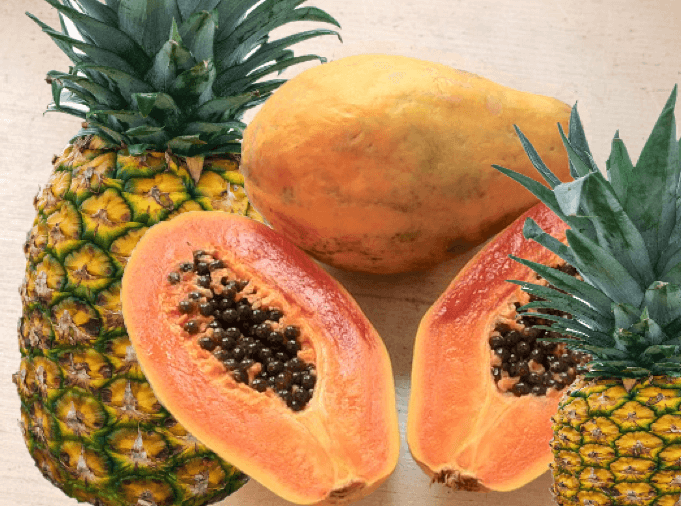 브로멜라인은 파인애플에서 추출되는 효소로, 체중 감량에 도움을 줄 수 있는 여러 가지 특징을 가지고 있고 파파인은 파파야에서 추출되는 효소로, 소화 개선과 체중 감량에 도움을 준다고 알려져 있습니다.