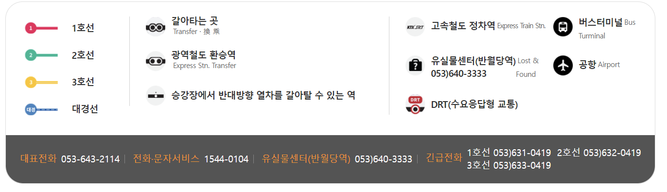 - 환승 가능한 역(대구, 동대구 등)을 이용하면 더 편리하게 목적지에 도달할 수 있습니다.