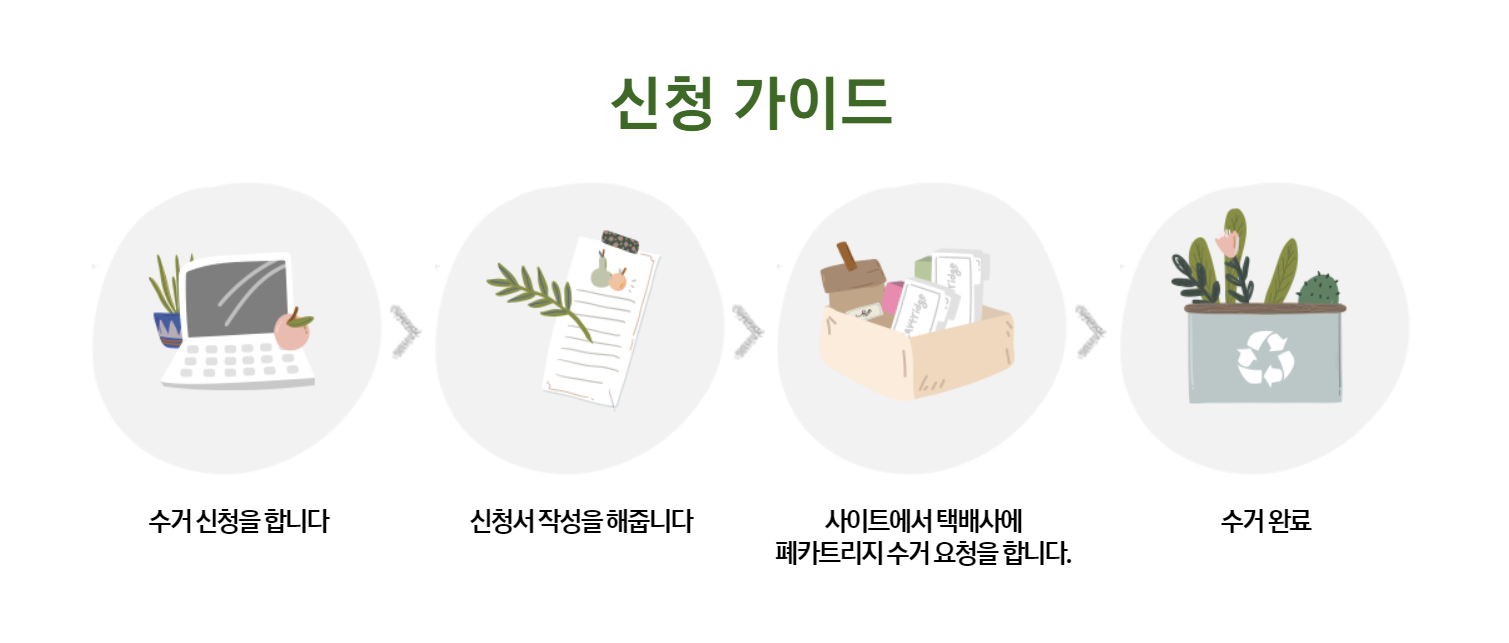 - 한 번의 신청당 최대 4개의 폐토너를 한 박스에 담아 수거 신청할 수 있습니다.