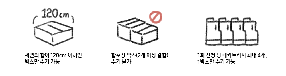 - 두 개 이상의 박스를 결합한 합포장 박스는 수거가 불가합니다.